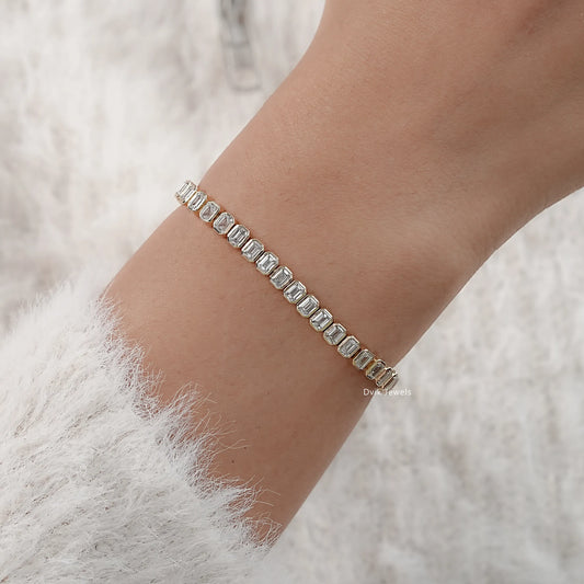 Emerald Cut Lab Diamond Bezel Set Tennis Bracelet
