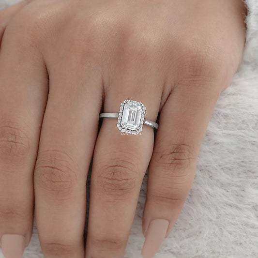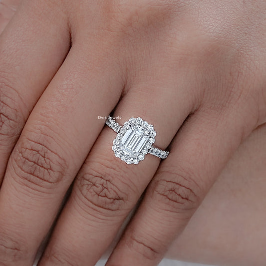 Emerald Cut Halo Lab Diamond Engagement Ring
