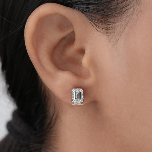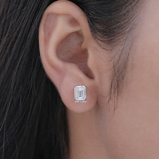 Emerald Cut Lab Diamond Bezel Set Stud Earrings