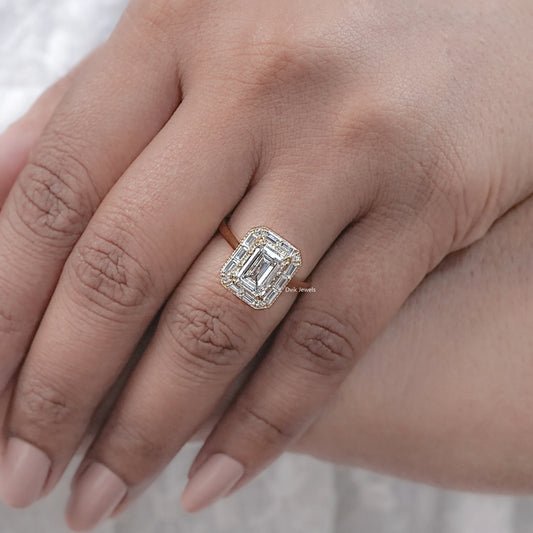 Emerald Cut Lab Diamond Halo Engagement Ring