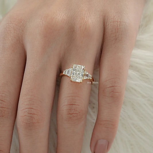 Five Stone Radiant And Baguette Cut Lab Diamond Ring
