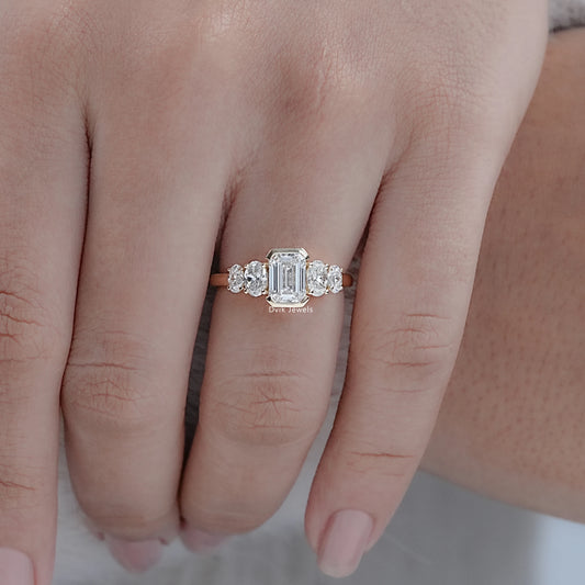 Five Stone Shield And Round Cut Lab Diamond Ring