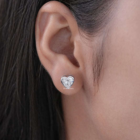 Heart Shaped Lab Diamond Bezel Set Stud Earrings