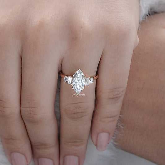 Marquise And Baguette Lab Diamond Five Stone Ring