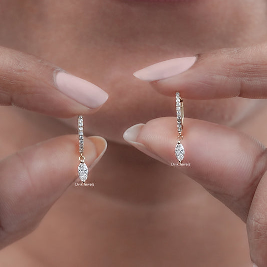 Marquise Cut Lab Diamond Dangle Hoop Earrings