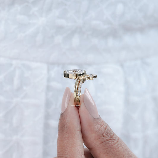 Marquise Cut Lab Diamond Chevron Bridal Ring Set
