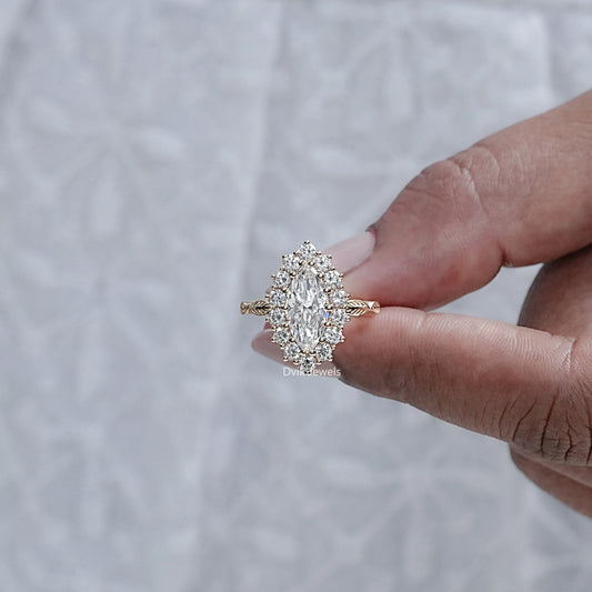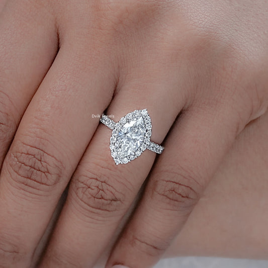 Marquise Cut Lab Diamond Engagement Ring with Pave Band