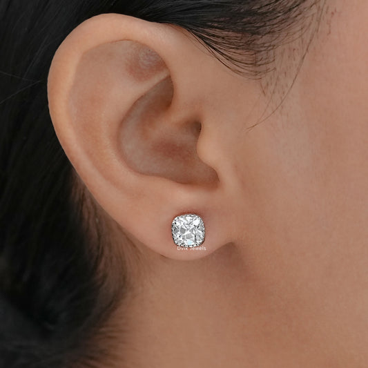 Milgrain Square Old Mine Cushion Cut Stud Earrings