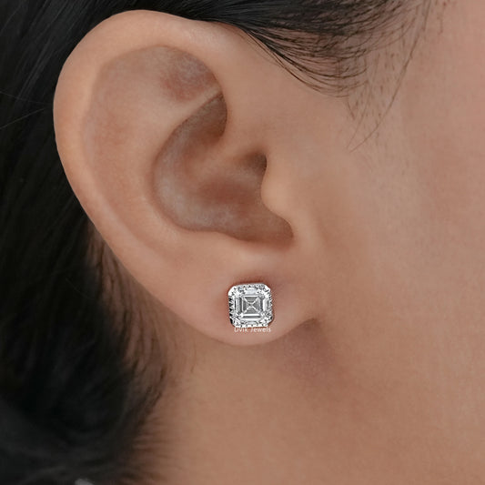 Milgrain Asscher Cut Lab Grown Stud Earrings