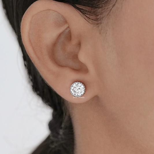 Milgrain Set Round Lab Diamond Stud Earrings