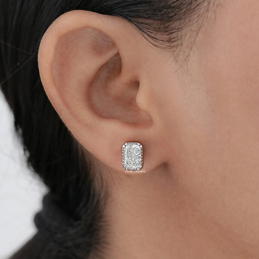 Milgrain Radiant Cut Lab Diamond Stud Earrings