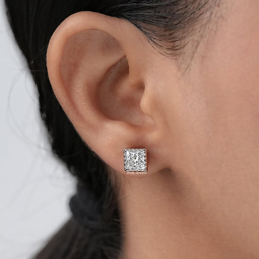 Milgrain Princess Cut Lab Diamond Stud Earrings