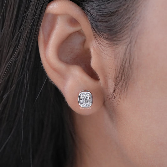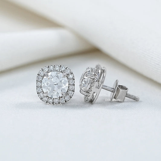 Old Mine Cushion Cut Lab Diamond Stud Earrings