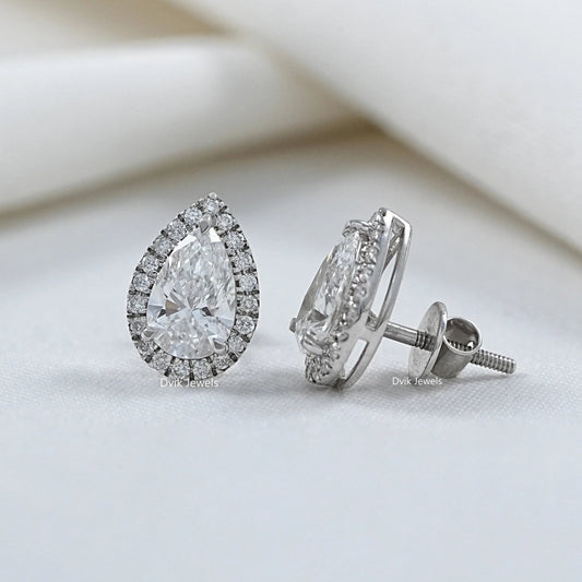Pear Cut Lab Grown Diamond Halo Stud Earrings