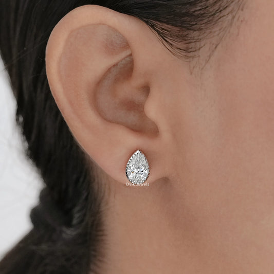 Pear Cut Lab Diamond Milgrain Stud Earrings