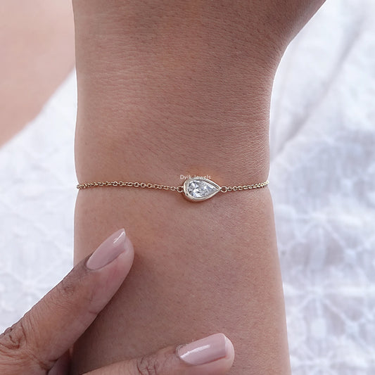 Pear Cut Lab Grown Diamond Solitaire Chain Bracelet