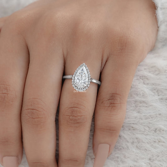 Pear Halo solitaire Diamond Engagement Ring