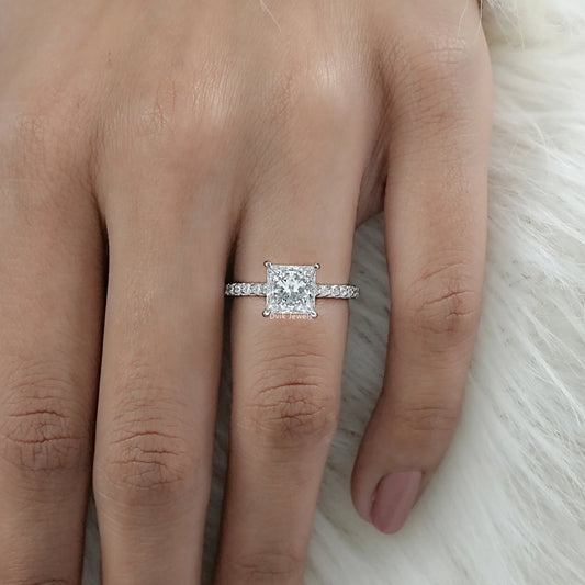 Princess Cut Lab Diamond Pave Set Solitaire Accent Ring