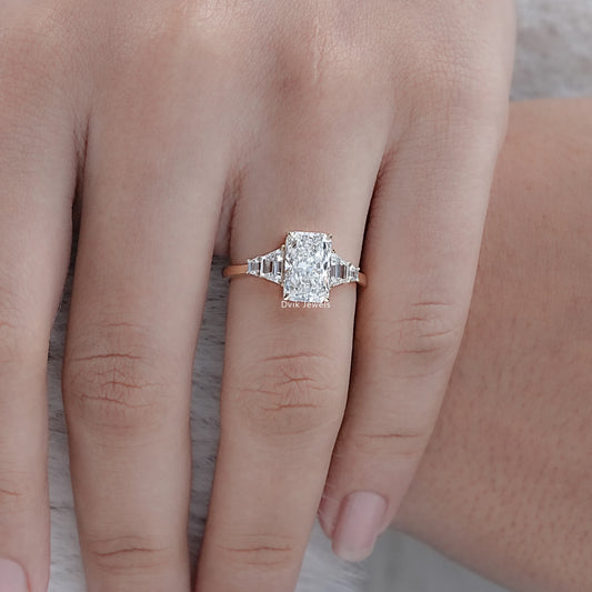 Radiant Cut Lab Grown Solitaire Accent Engagement Ring