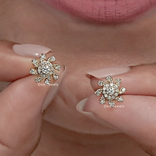 Round Cut Lab Diamond Floral Shape Stud Earrings