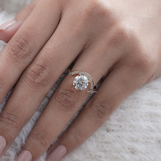 Round Cut Lab Diamond Open Gap Two Stone Ring