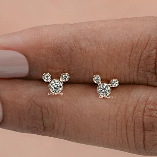 Round Diamond Bezel Set Mickey Mouse Dainty Stud