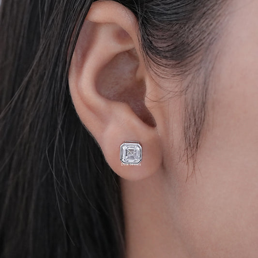 Bezel Set Asscher Cut Lab Diamond Stud Earrings