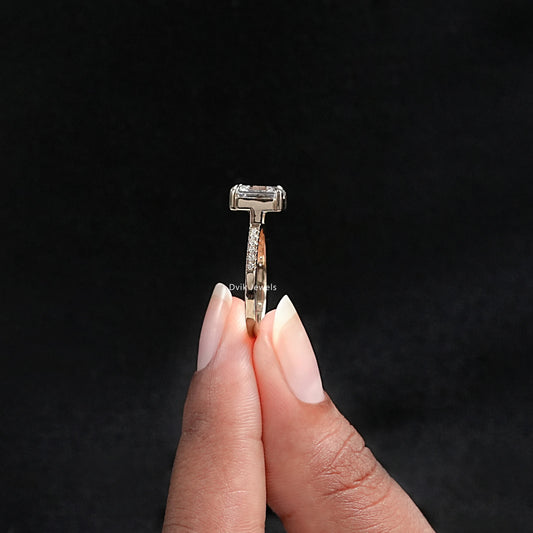 Bezel Set Emerald Cut Lab Diamond Engagement Ring
