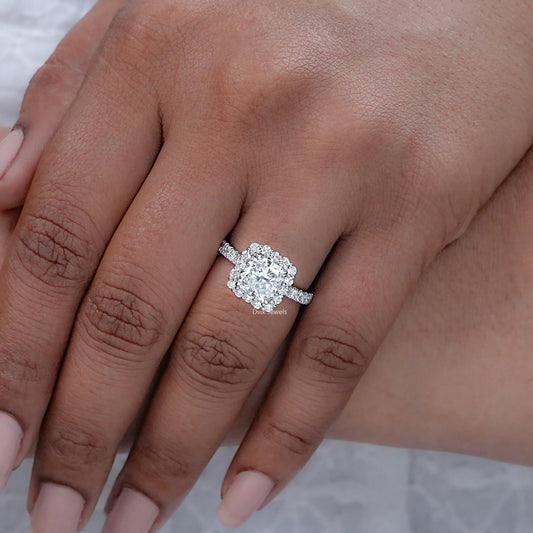 Square Old Mine Cushion Cut Lab Diamond Five Stone Ring