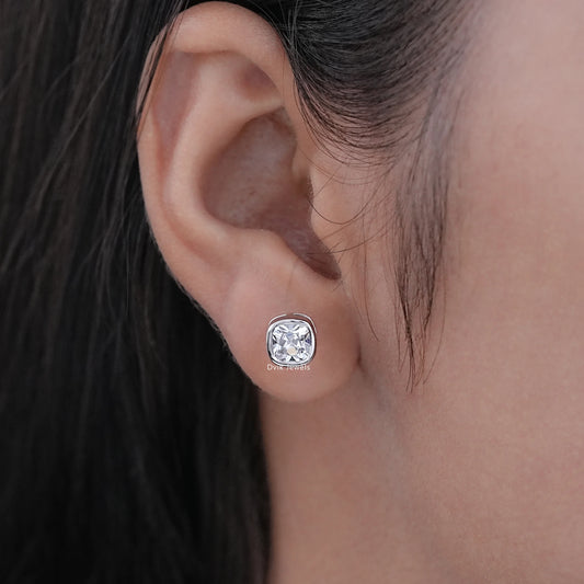 Square Old Mine Cushion Lab Diamond Stud Earrings