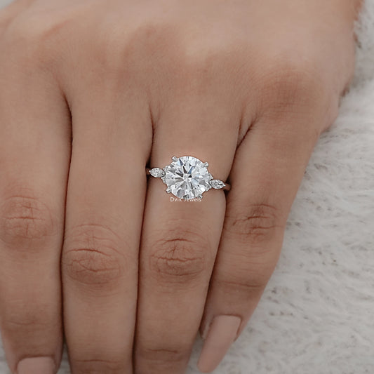 Curved Marquise Cut Lab Diamond Solitaire Engagement Ring