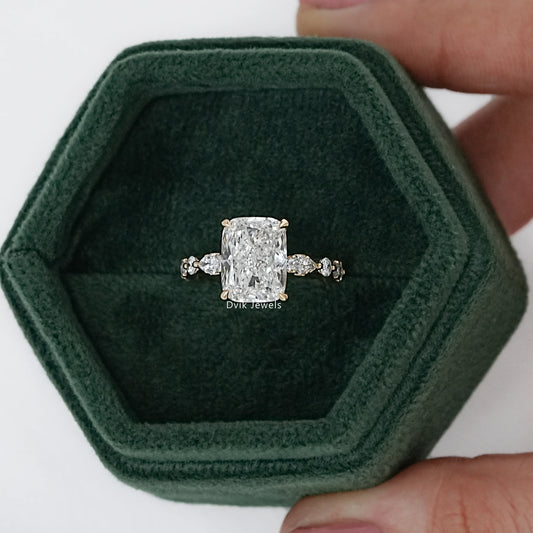 Cushion Cut Lab Diamond Engagement Ring With Pave Band