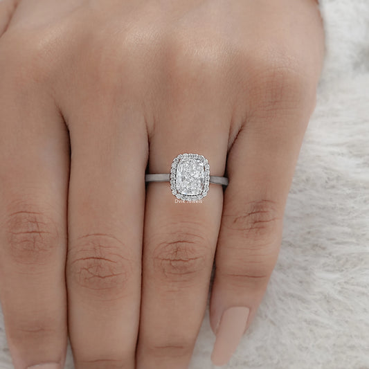 Cushion Cut Lab Diamond Halo Engagement Ring