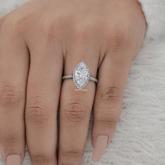 Classic Marquise Cut Halo Diamond Engagement Ring