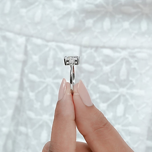 Emerald Cut Lab Diamond Three Stone Ring