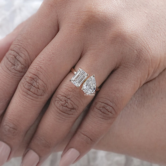 Emerald And Pear Cut Lab Diamond Two Stone Ring