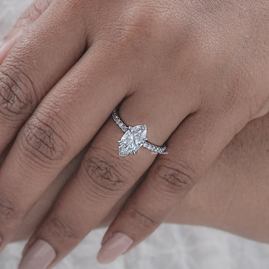 Marquise Cut Lab Diamond Solitaire Engagement Ring