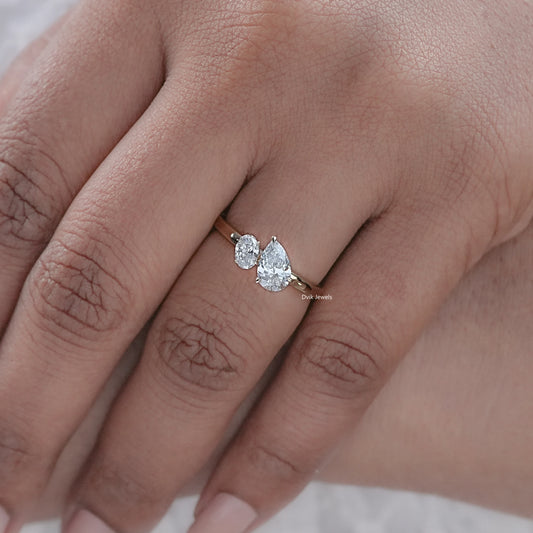 Pear And Oval Cut Lab Diamond Two Stone Ring