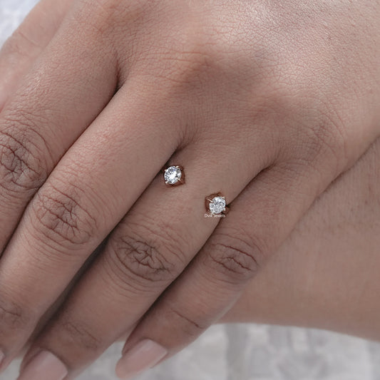 Round Cut Lab Diamond Open Gap Two Stone Ring