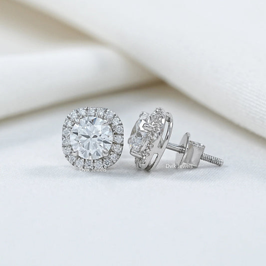 Round Cut Lab Diamond Bezel Set Stud Earrings