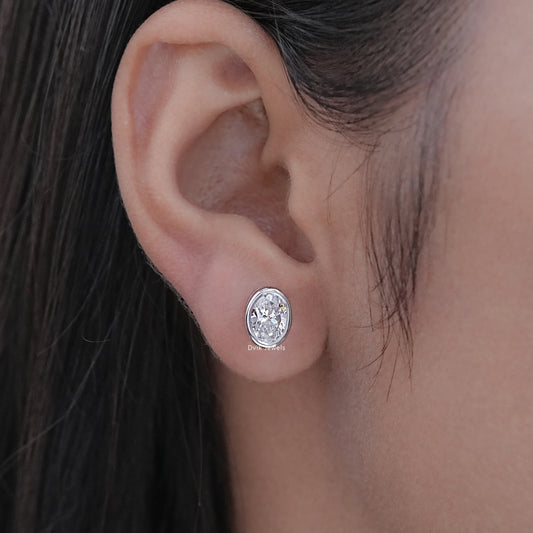 Oval Cut Lab Diamond Bezel Set Stud Earrings