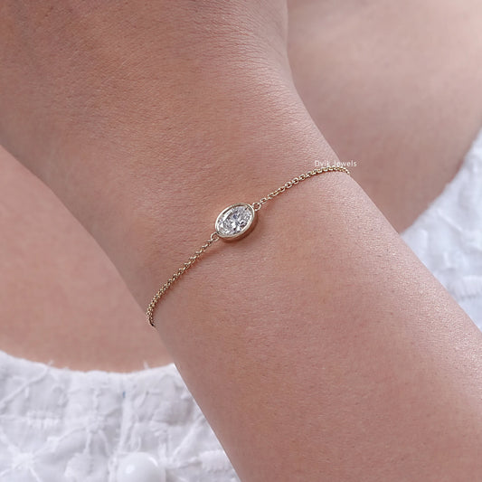Oval Lab Diamond Bezel Solitaire Chain Bracelet
