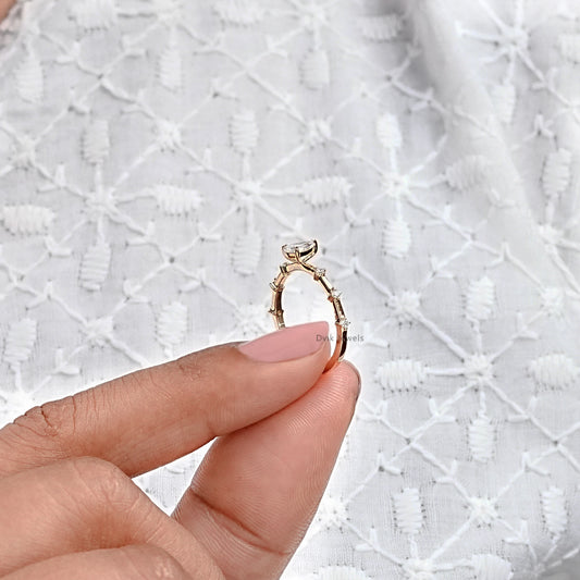 Round Cut Lab Diamond Plain Chevron Bridal Set