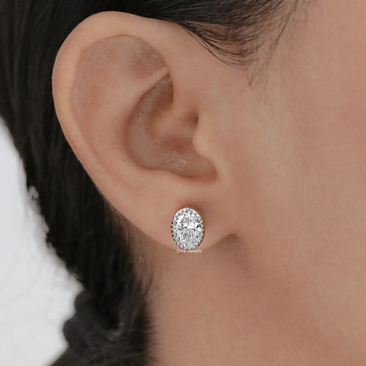 Lab Grown Oval Cut Diamond Milgrain Set Earrings