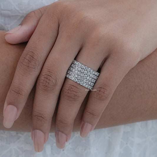 A diamond half eternity band is intended to symbolize unwavering love and devotion, just like a complete eternity band, but it is more practical and comfortable. Since the diamonds are only set on the upper half of the ring, it is fashionable enough to be worn every day. Because it is also easier to resize and often less expensive, this form is popular for wedding bands, anniversary gifts, or sentimental presents that honor important occasions.