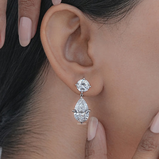 Oval & Round Cut Lab Diamond Dangle Drop Earrings