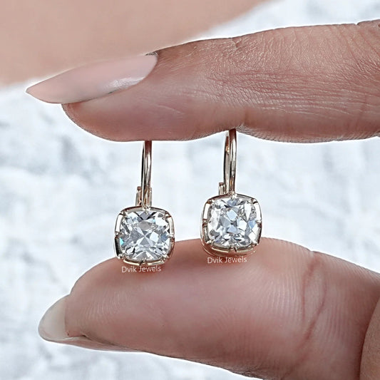 Square Old Mine Cushion Lab Diamond Dangle Earrings