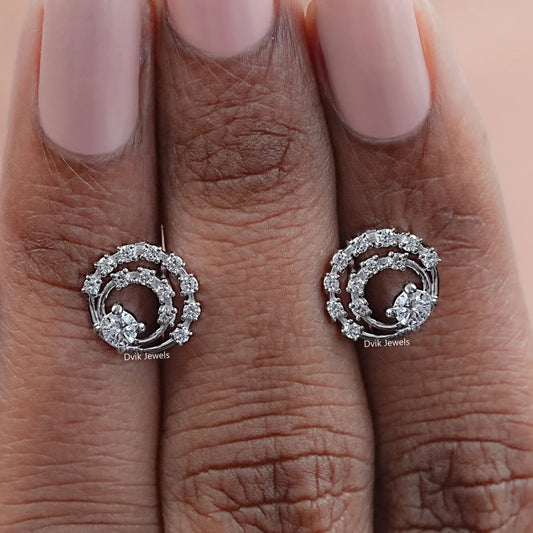 Round Lab Diamond Open Circle Dainty Earrings