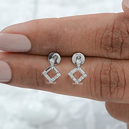 Round Lab Diamond Square Shape Dangle Earrings
