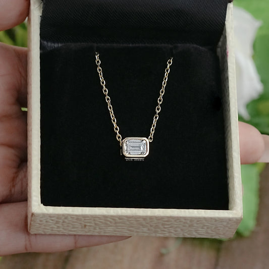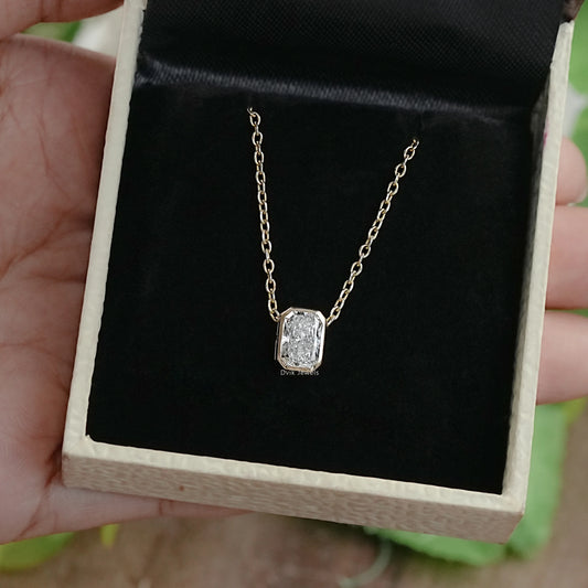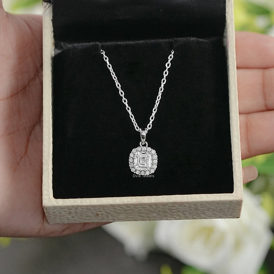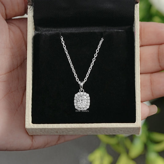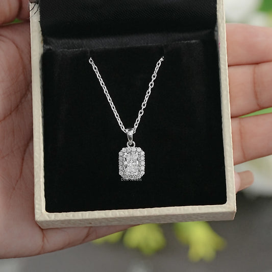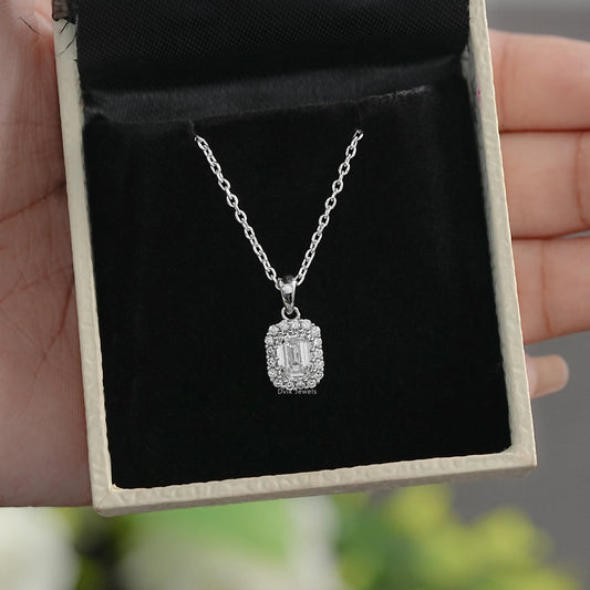 Emerald Cut Minimalistic Diamond Halo Pendant